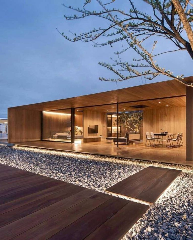 The expansion of the home beyond the borders of the rooms is a growing trend in modern architecture. The glass facades were mainly driven by the search for the opening of the house towards the natural landscape that surrounds it, allowing the interior to be illuminated with plenty of natural light.